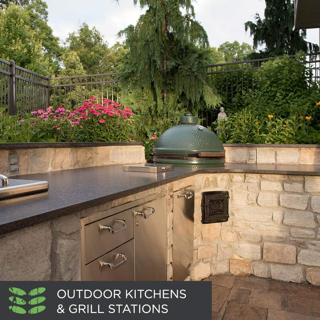 Working with a landscape designer to determine what you need and how it fits with your home and outdoor space you have is a must when building an outdoor kitchen. Not only from a safety and permitting perspective, but they can also recommend features and materials you may not have considered, such as outdoor task and seating lighting so you can cook after the sun goes down and spend more time in what will surely become a favorite space. They can also help with incorporating bushes, trees, and flowers in your hardscaping plan to help with everything from increased privacy to repelling bugs.